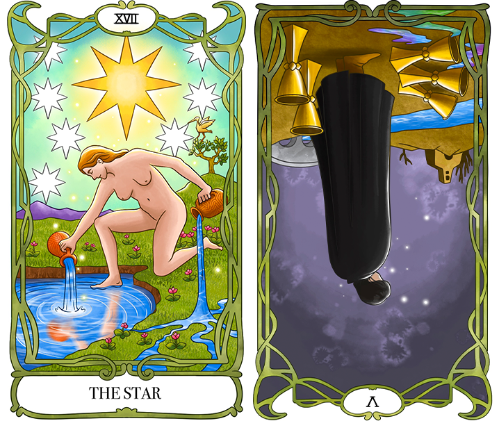 The Star (정방향) + Five of Cups (역방향)