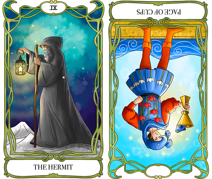 The Hermit (정방향) + Page of Cups (역방향)
